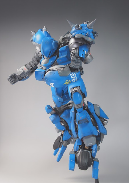 I love the way the modeler exposed the internal parts of Kampfer making it look like a robot from the movie Transformers. I like the overall design of the mobile suit because it improved the original version by having less armor and adding more thrusters making the unit more maneuverable, lightweight and fast. The Gatling gun is also huge and looks pretty much armed and powerful but I rather have the Gouf handle that weapon. The shoulder guns looks great and I find it more proper for this unit rather than the big bazookas.